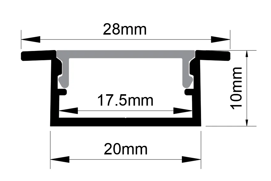 Product Specification Item No. LW-2010E197 External dimension W28×H10mm Aluminum Profile Samples Display Box Installation